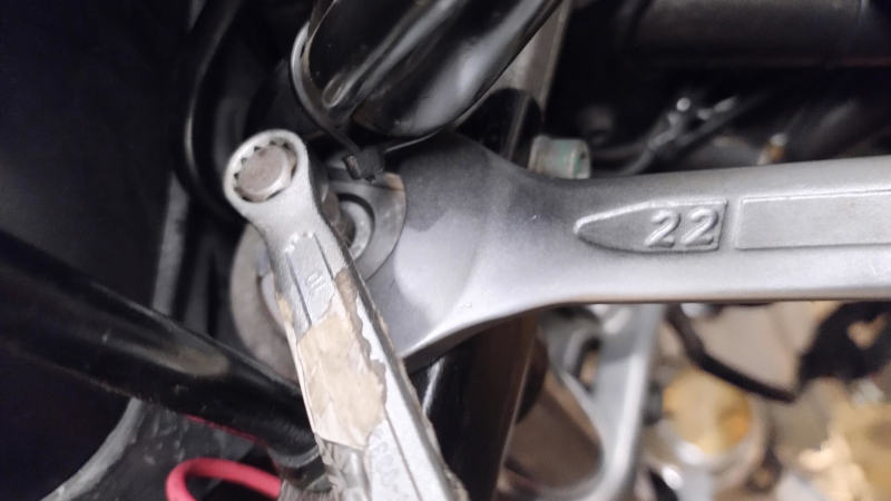 Lagi w moim K75 są trochę inaczej zbudowane niż w nowoczesnych motocyklach. Spodziewałem się tego, że rozbiera się je tak samo jak współczesne czyli odkręcamy śróbę na dole lagi, szarpiemy za lagę I dolny ślizg wypycha nam uszczelniacz.