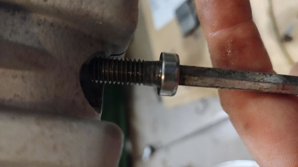 Aby dolać oleju nalezy odkręcic korek u góry lagi. Trzeba złapać aluminiowy element płastkim kluczem a następnie odkręcić śrubę imbusową:
