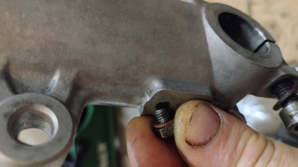 Aby wymienić olej bez wymiany uszczelniaczy, wystarczy odkręcić małą śrubkę na klucz 10mm (zdjęcie poniżej) na dole lagi (nie od spodu tylko w dolnej części z boku). Później albo odkręcamy górę by odpowietrzyć, albo machamy lagą trochę góra/dół by zlać cały olej.